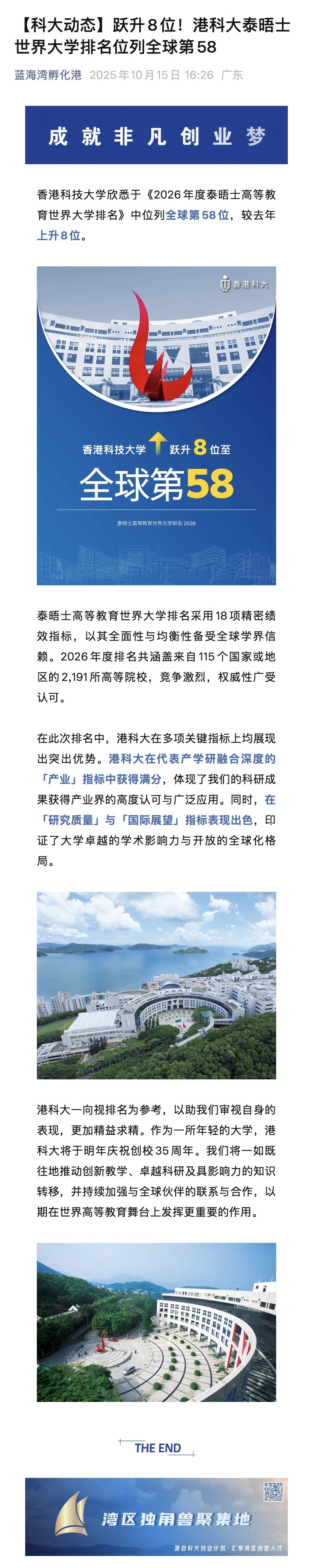 跃升8位!港科大泰晤士世界大学排名位列全球第58